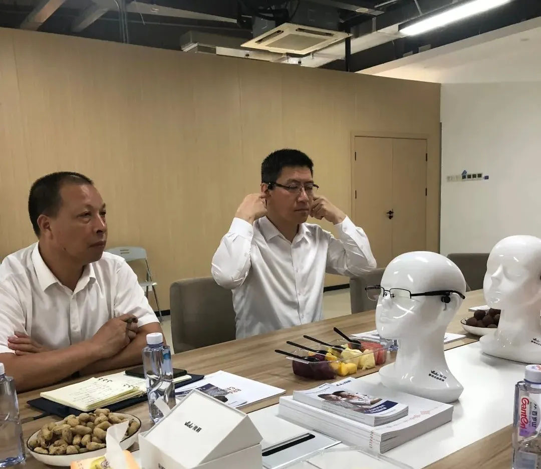 倪杰区长主动了解企业需求,希望帮企业解决实际问题。现场还佩戴体验了公司的VLIKE骨听骨导式助听器,充分肯定了太尔集团近年来所取得的突出成绩,希望集团再接再厉,力争研发更好的产品为听障群体服务。